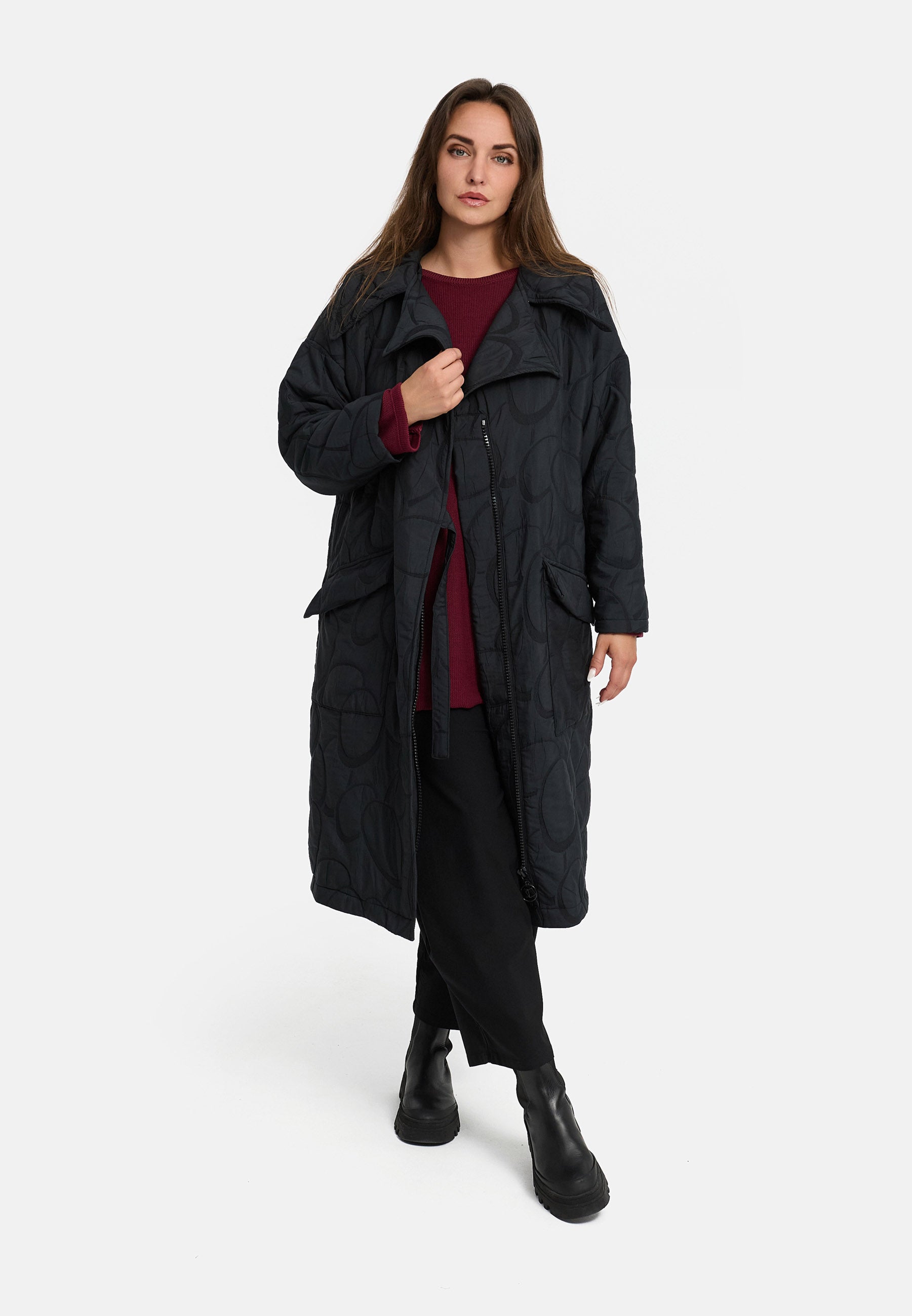Ein moderner Statement-Mantel mit markanter Steppstruktur, der Stil, Komfort und Wärme perfekt verbindet – dein idealer Begleiter für die kalte Jahreszeit.
