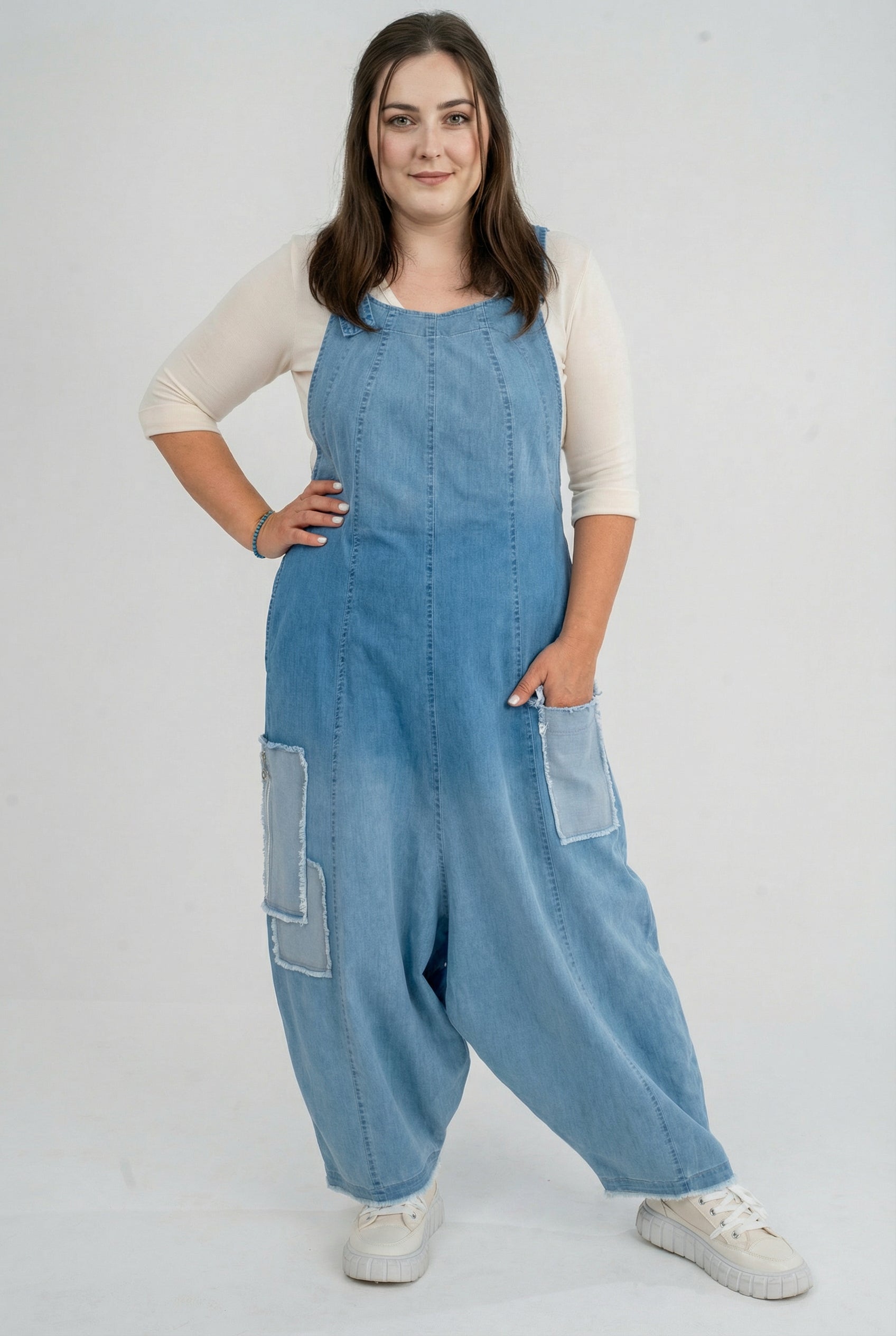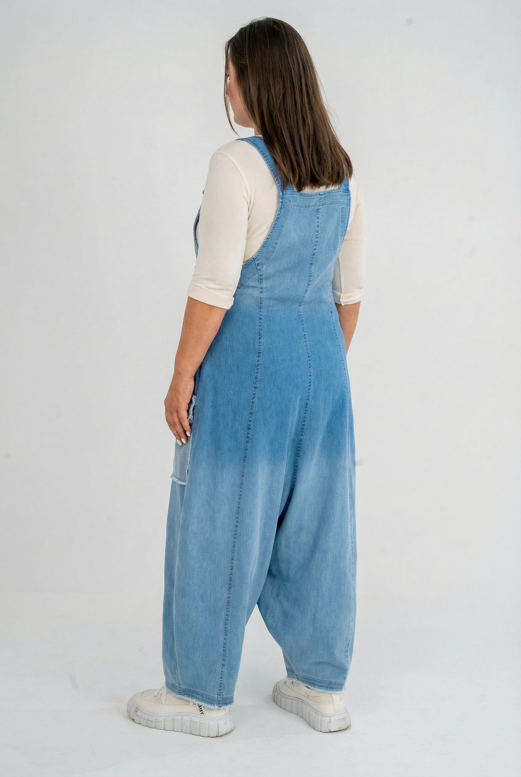 'Sky' Latzhose – Premium-Denim, Ombre & Patch-Details